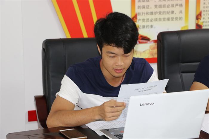會(huì )上,團支部書(shū)記鄒帥傳達學(xué)習共青團中央以及賀州團市委關(guān)于深入開(kāi)展學(xué)習領(lǐng)會(huì )習近平總書(shū)記“7.2”重要講話(huà)精神切實(shí)抓好團的十八大精神學(xué)習宣傳貫徹工作有關(guān)文件精神。會(huì )議通過(guò)觀(guān)看PPT、視頻以及團員青年代表朗誦習近平重要思想方針理論,深入學(xué)習團的十八大精神。幾位團員青年們代表們分段朗誦了習近平總書(shū)記在“7.2”上的重要講話(huà)精神,展現了實(shí)業(yè)公司團員青年們的激情與風(fēng)采。