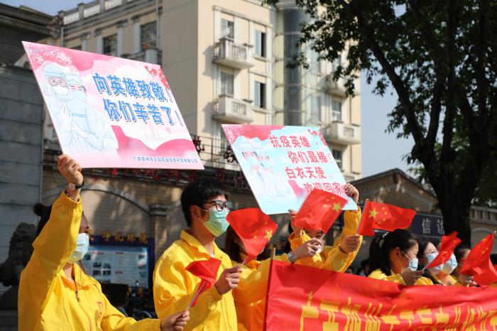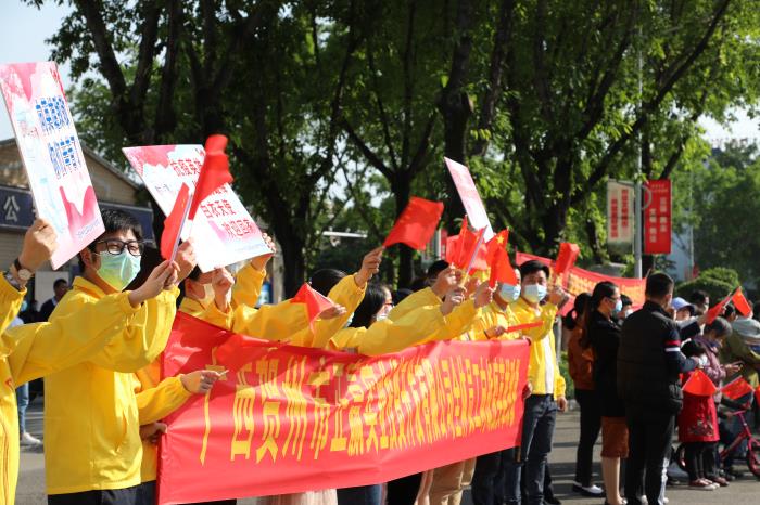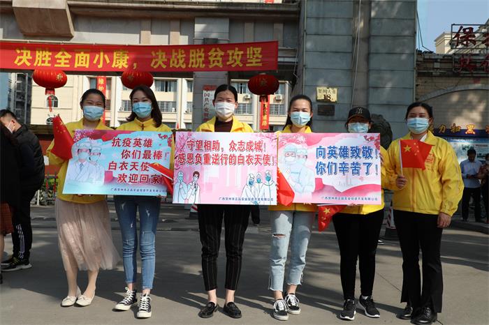 4月15日下午,賀州支援湖北醫療隊33名隊員圓滿(mǎn)完成工作任務(wù)凱旋而歸。賀州正贏(yíng)實(shí)業(yè)公司黨支部組織全體黨員干部職工一行到賀州大道迎接英雄歸來(lái),開(kāi)展“致敬英雄,擔當作為”主題黨日活動(dòng)。