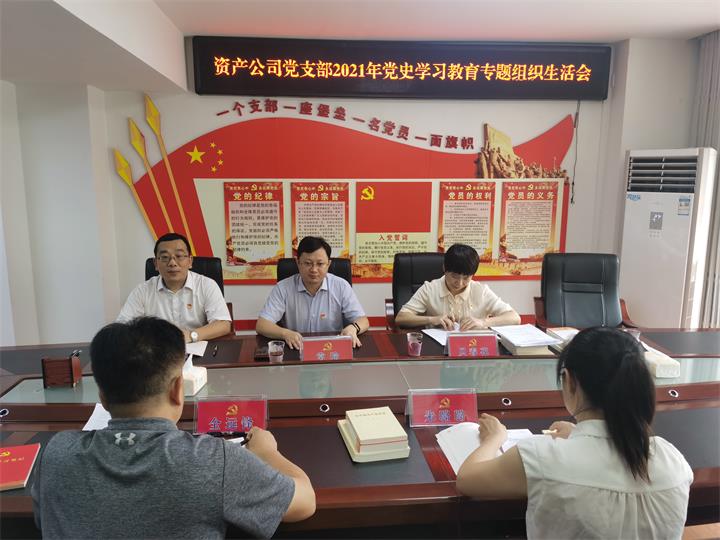 7月22日,集團黨委副書記、董事、總經理常瑜到資產公司黨支部為黨員干部上專題黨課,并指導黨史學習教育專題組織生活會,支部書記謝慈政主持會議。