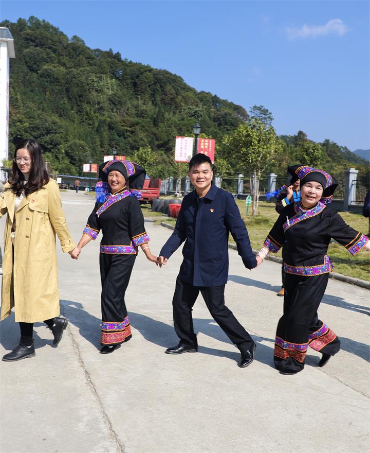 手牽手、心連心,民族團結齊奮進(jìn)。在活動(dòng)中,南鄉壯族山歌隊為大家演唱了古樸的壯族特色歌曲《歡迎朋友到壯鄉來(lái)》和《南鄉歡迎您》,讓大家充分感受到壯鄉人民獨特的文化魅力與熱情純樸的民俗風(fēng)情。隨后,全體黨員與鄉民一同開(kāi)展紅色歌曲大家唱活動(dòng),攜手齊唱《唱支山歌給黨聽(tīng)》,共同跳起《愛(ài)我中華》民族團結手勢舞蹈,并體驗了壯族特色的投擲繡球等民俗文化活動(dòng),讓大家感受到了各民族相聚在一起,共敘民族團結之情的良好氛圍。