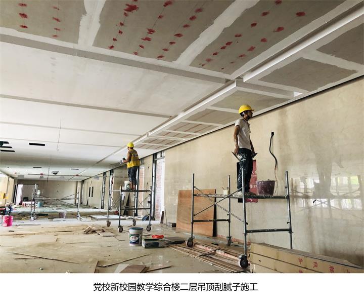 火熱的天氣,高溫挑戰(zhàn)下,市委黨校新校園建設(shè)項目的工人們或裝模、鋪貼或焊接,全身心投入裝飾裝修工作。汗水不停地從他們額頭、兩頰往下滴,他們也僅僅是抬起手臂匆忙擦掉,繼續(xù)埋頭工作,確保工程如期交付。目前該項目完成總工程量的77%,正在進行室內(nèi)裝修和設(shè)備調(diào)試工作。