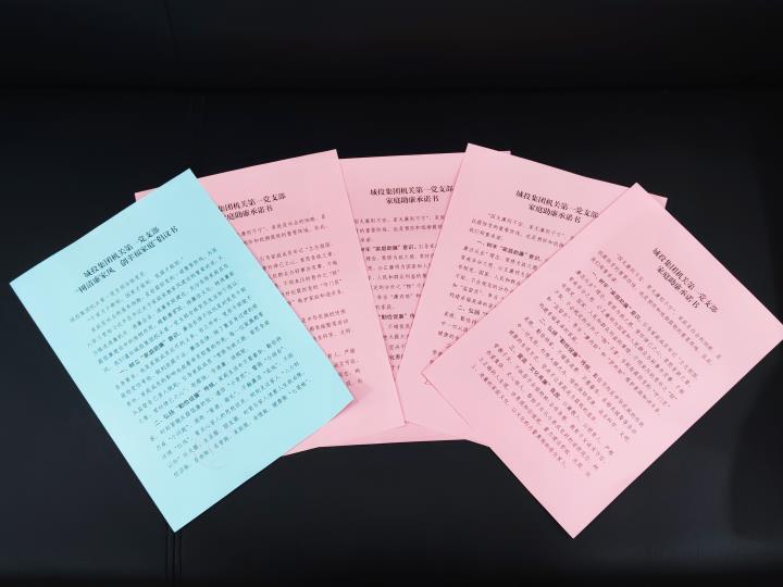 會上,發(fā)放了《城投集團機關(guān)第一黨支部“樹清廉家風創(chuàng)幸福家庭”倡議書》,全體黨員集體簽訂了《家庭助廉承諾書》,把廉潔教育延伸到干部職工的家庭中和“八小時”之外,倡導黨員干部守好“廉潔門”、當好“廉管家”,常吹家庭廉潔風。