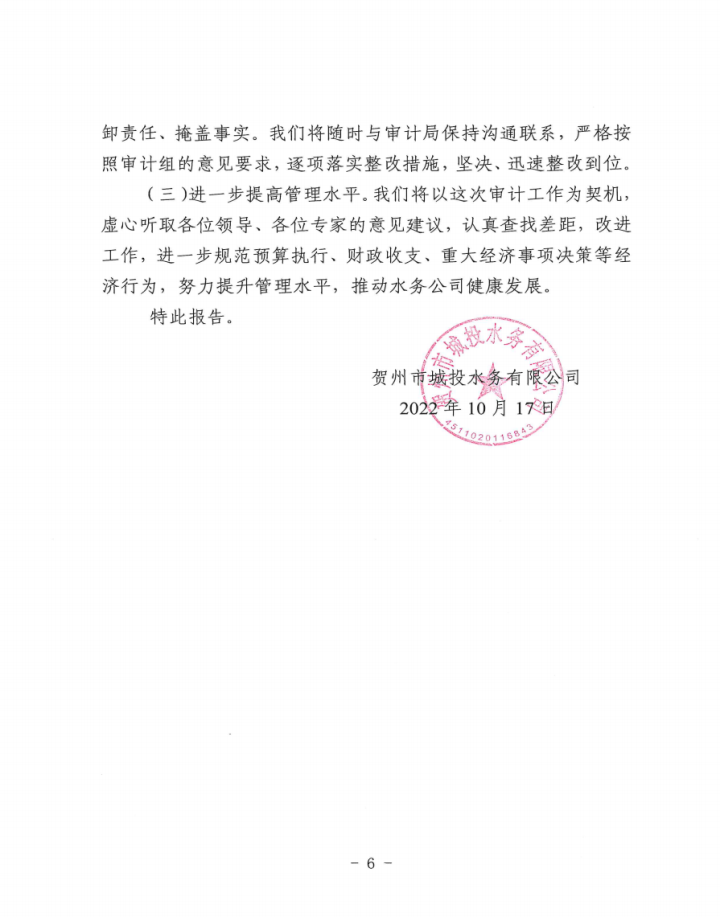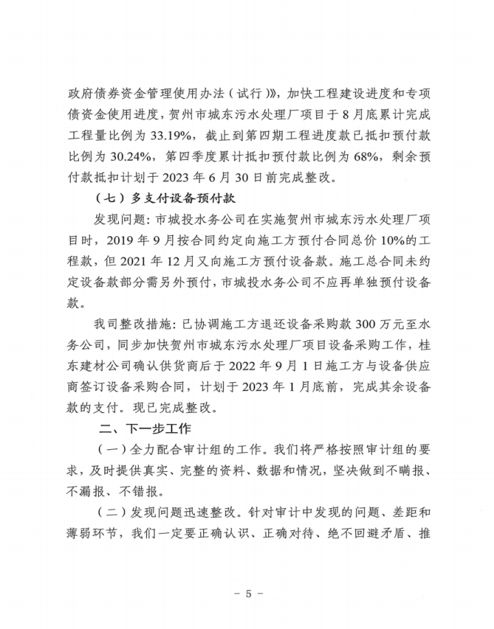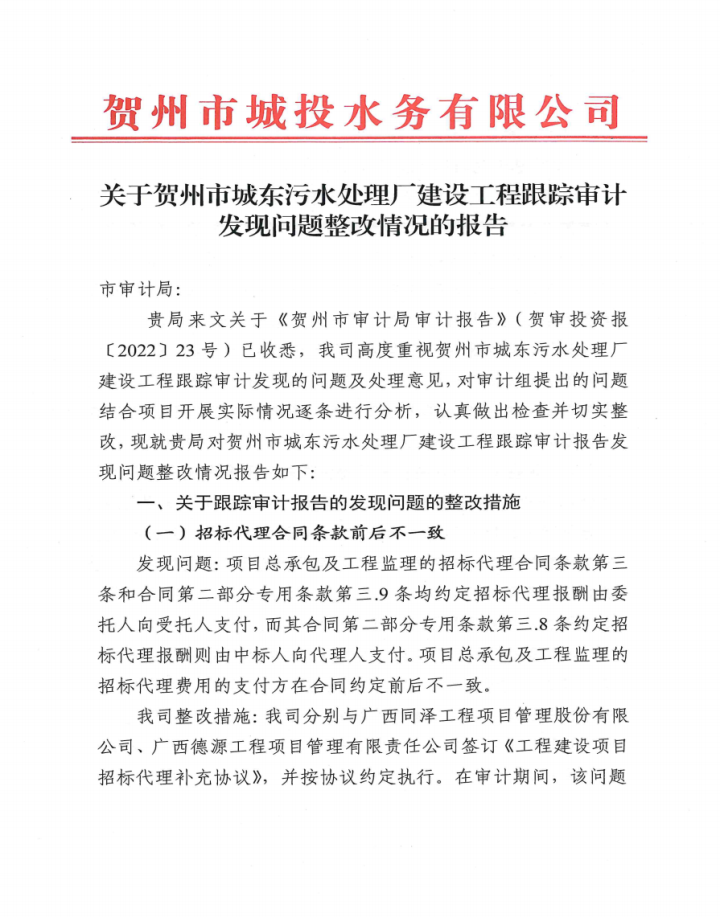 上一篇:關(guān)于賀州市城投公司辦公樓附屬裝修工程結算審計發(fā)現問(wèn)題整改情況的報告