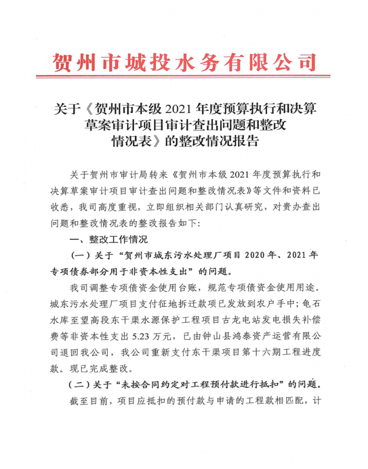 下一篇:賀州城投集團原董事長(cháng)、總經(jīng)理蒙金昌同志經(jīng)濟責任審計發(fā)現問(wèn)題整改情況公告