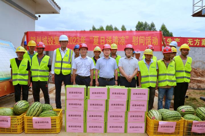 為持續(xù)做好夏季防暑降溫工作,關心關愛在高溫天氣中堅守崗位、辛勤勞動的施工人員,近日,城投集團黨委書記、董事長黃俊,集團黨委副書記、總經理常瑜分別到賀州第三高級中學項目、賀州市平桂區(qū)域污水處理設施建設項目開展2023年“夏日送清涼”慰問活動。
