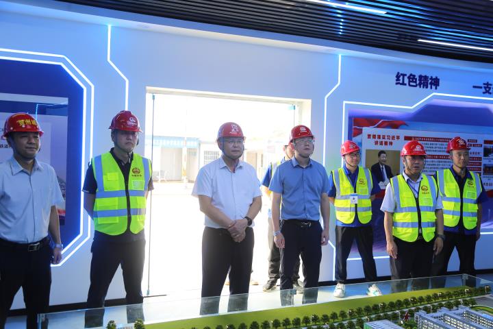 在賀州第三高級中學項目現(xiàn)場,黃俊詳細地觀摩了項目部VR體驗室、項目積分商城、智慧工地展廳、現(xiàn)場安全質(zhì)量標準化管理樣板間等,對項目的施工工藝、建筑品質(zhì)、管理水平等方面給予了高度的贊賞。他要求,各參建單位要加大聯(lián)動,密切配合,嚴格把控風險,重視工程安全、質(zhì)量、進度和成本,以工匠精神打造精品項目,高標準、高水平、高質(zhì)量推動項目建成。