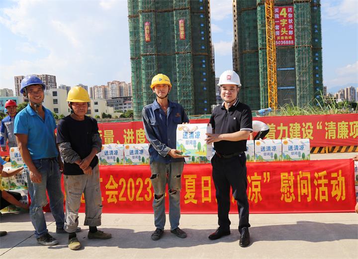 慰問組一行來到項目看望一線工人,親切問候他們的工作情況,感謝工人們在高溫天氣下辛勤付出,叮囑他們一定要做好防暑降溫措施,把安全放在第一位。同時送上清涼飲品,鼓勵他們繼續(xù)以飽滿的熱情和昂揚的精神投入到工作中。