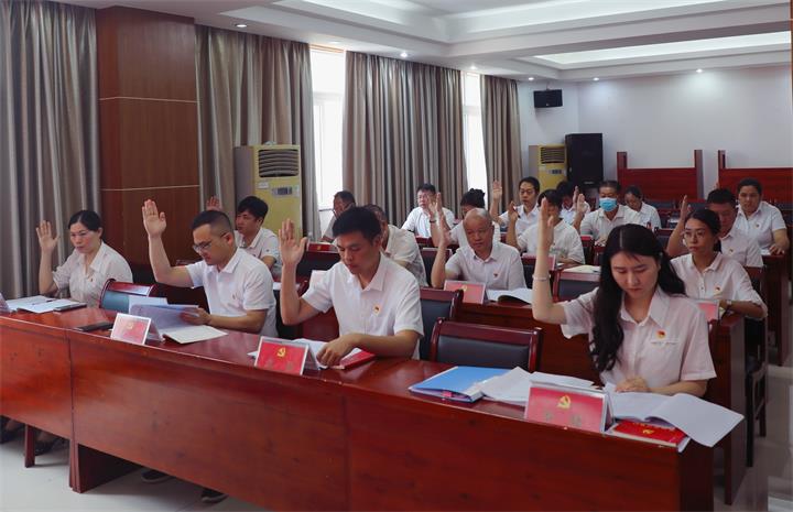 會(huì )議在激昂的國歌中拉開(kāi)序幕,全體黨員莊重肅立,齊唱《中華人民共和國國歌》。
