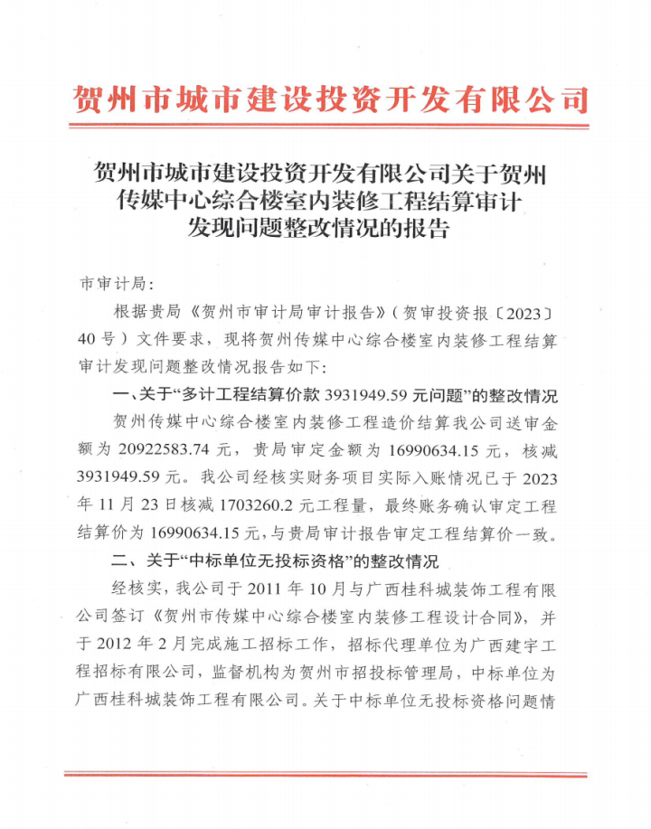 下一篇:關(guān)于賀州市八步區第二初級中學(xué)項目財務(wù)收支及項目執行情況審計發(fā)現問(wèn)題整改情況公告