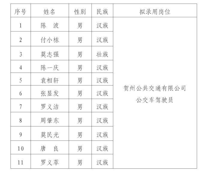 賀州市城市運(yùn)營(yíng)投資管理有限公司2023年第一次公開招聘擬錄用人員公示2023-06-30