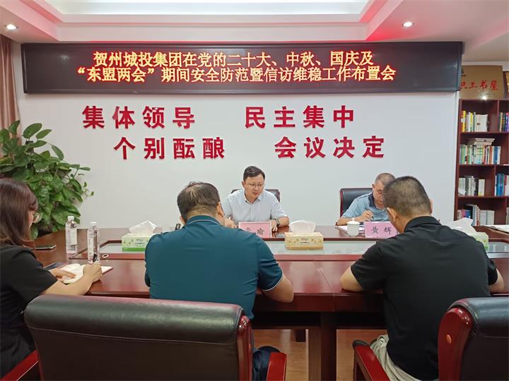 9月9日,賀州城投集團召開在黨的二十大中秋國慶節(jié)及東盟兩會期間安全防范暨信訪維穩(wěn)工作布置會。集團黨...