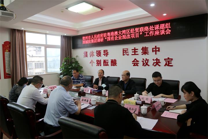 賀州市人民政府駐粵港澳大灣區(qū)經(jīng)貿(mào)聯(lián)絡處課題組到城投集團開展調(diào)研2022-05-10